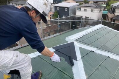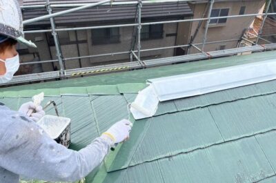 屋根の中塗りを行います。