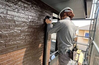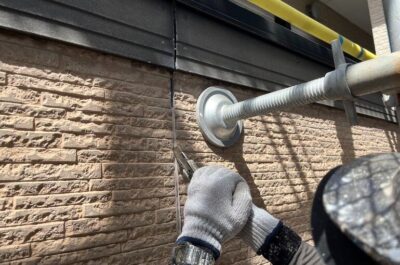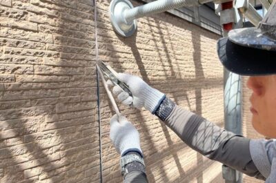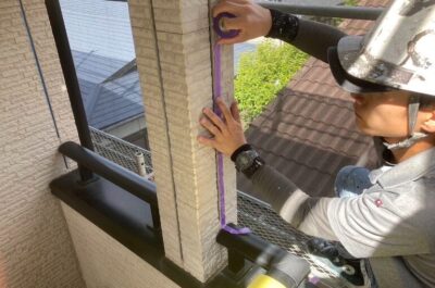 旧シーリングの撤去を行います。