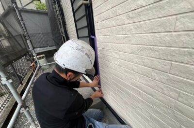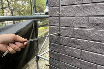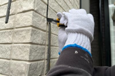 旧コーキングの撤去を行います。