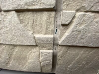 次にコーキング材に含まれる可塑剤が抜けて、コーキング材にひび割れが発生します。更に劣化するとコーキング材が風化してしまい、ボロボロと目地からコーキング材が剥がれ落ちてきます。
