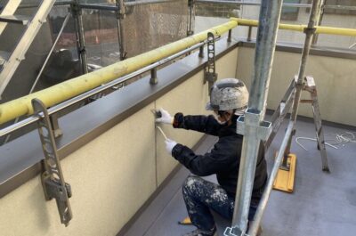 まずは既存シーリング補修の撤去、マスキングテープ貼りを行います✨