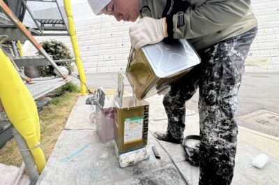 まずは塗料の主剤と硬化剤を計量して攪拌します✨