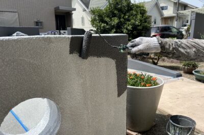 塀の下塗りを行います✨