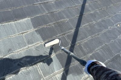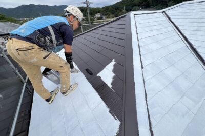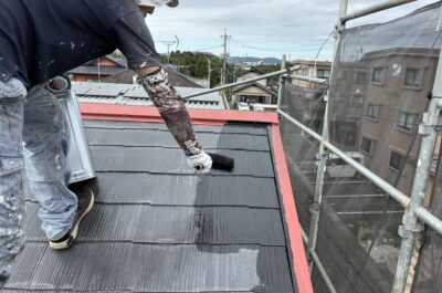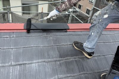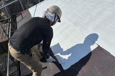 屋根の下塗りや板金部の錆止めを行いました🌈