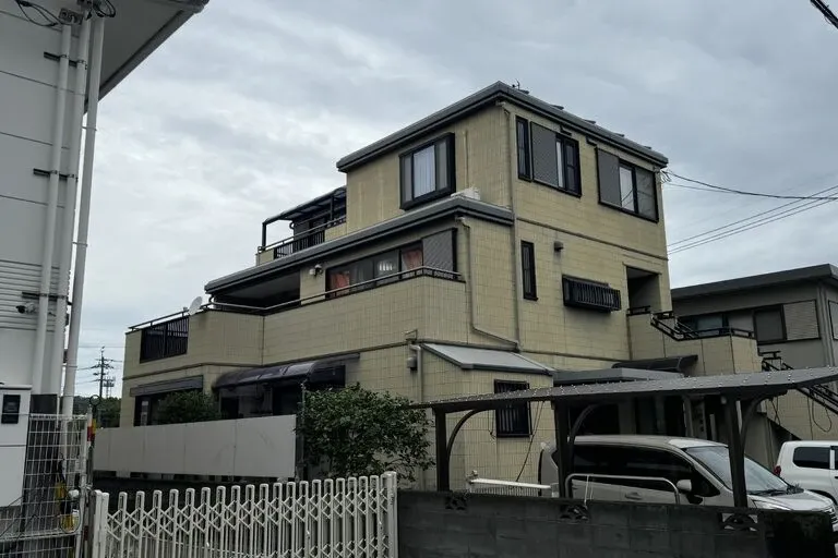 また、屋根は陸屋根タイプで金属製ですので下塗りに錆止めを使用し、無機フッ素塗料で仕上げました。色褪せと汚れを防ぐべく耐久性と低汚染性を兼ね備えた無機フッ素+光触媒フッ素コーティングにて仕上げました。