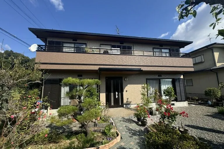 パナホームの特徴であるハイセラコートという無機コーティングが施されている建物です。ハイセラコートは通常の下塗り材とは相性が悪く、密着不足が懸念されましたので。無機コーティング対応の専用下塗り材を使用しました。