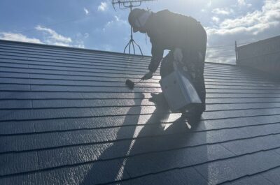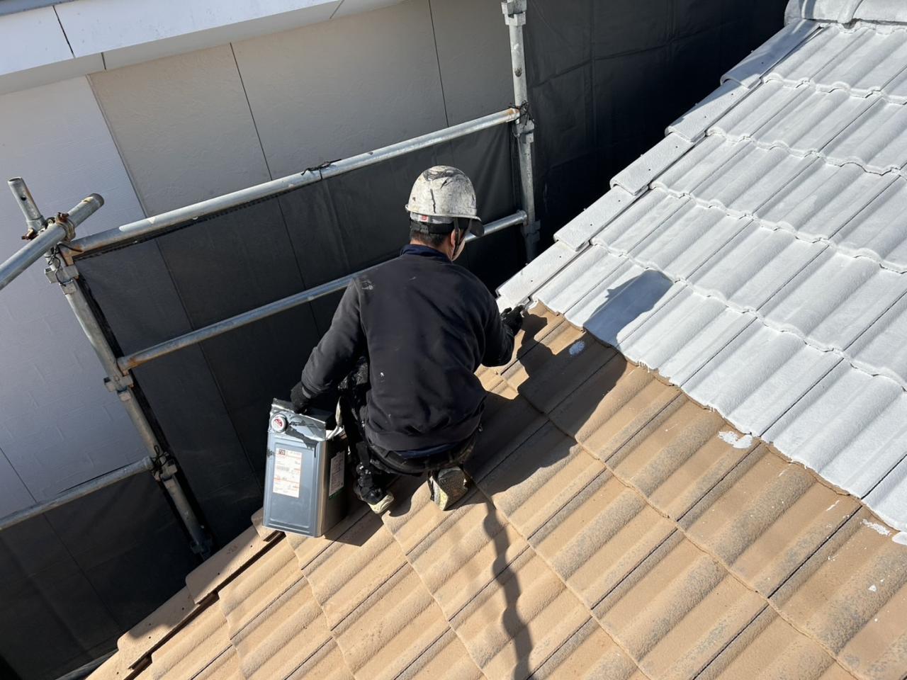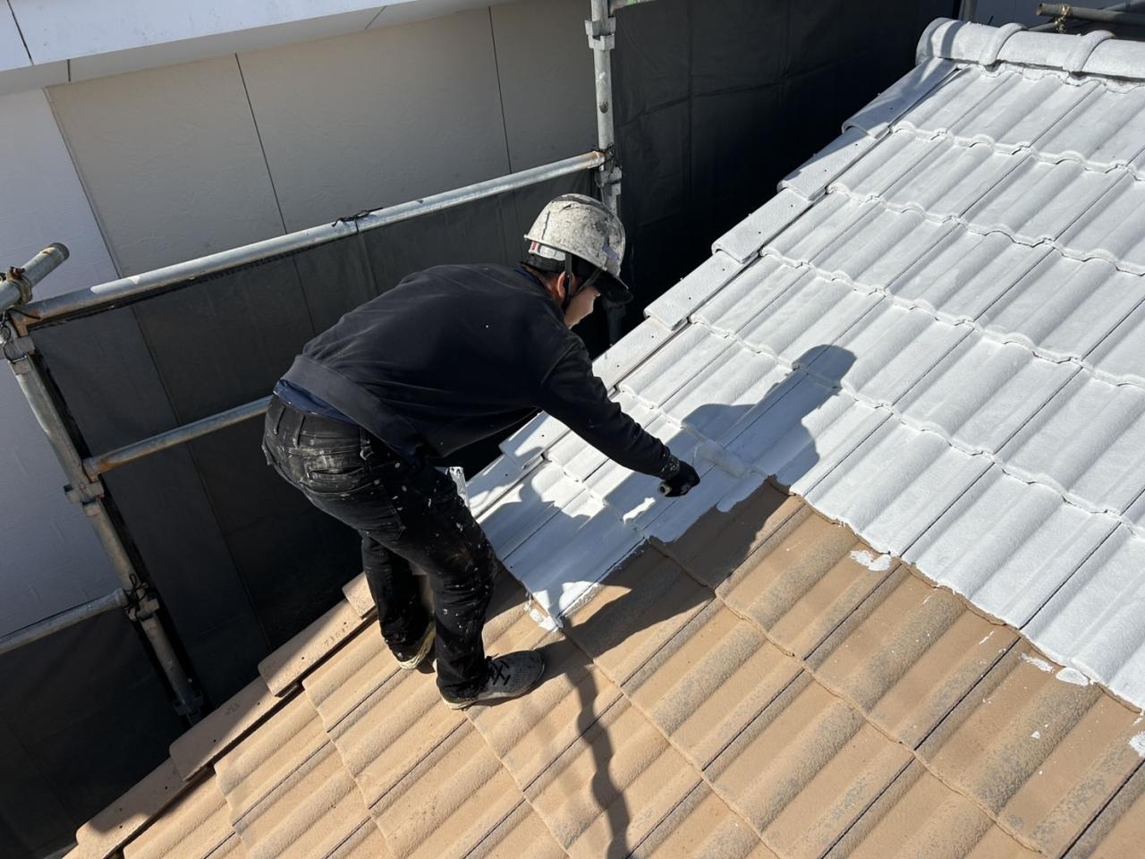 屋根の上塗りを行いました🌈