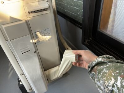 劣化していた室外機のホースを巻き直しました。