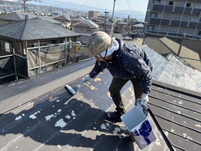 本日は屋根の下塗りを行いました。